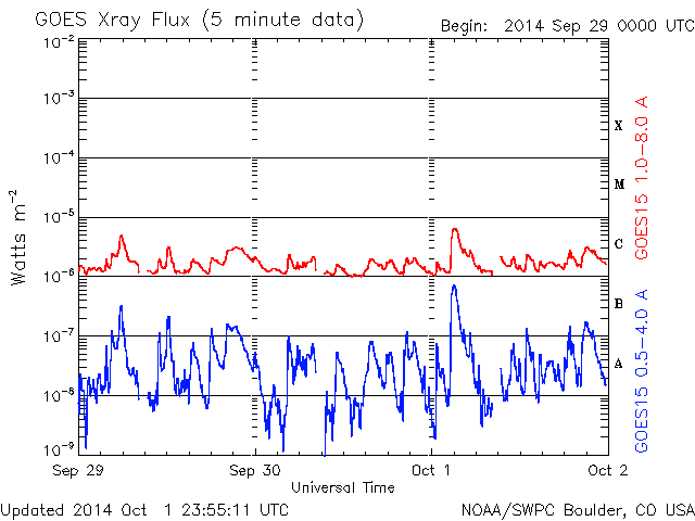 De operationele data in de bovenstaande grafiek werd aangepast om de schaalfactor te verwijderen die werd toegepast door het Space Weather Prediction Center (SWPC). Vanwege de SWPC-schaalfactor in de operationele data werden de zonnevlammen 42% kleiner gerapporteerd dan deze in de wetenschappelijke data. De schaalfactor werd ook verwijderd uit de lijst met zonnevlammen om de werkelijke fysieke eenheden weer te geven.
