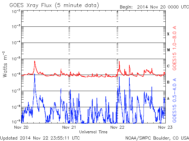 De operationele data in de bovenstaande grafiek werd aangepast om de schaalfactor te verwijderen die werd toegepast door het Space Weather Prediction Center (SWPC). Vanwege de SWPC-schaalfactor in de operationele data werden de zonnevlammen 42% kleiner gerapporteerd dan deze in de wetenschappelijke data. De schaalfactor werd ook verwijderd uit de lijst met zonnevlammen om de werkelijke fysieke eenheden weer te geven.