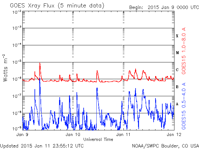 De operationele data in de bovenstaande grafiek werd aangepast om de schaalfactor te verwijderen die werd toegepast door het Space Weather Prediction Center (SWPC). Vanwege de SWPC-schaalfactor in de operationele data werden de zonnevlammen 42% kleiner gerapporteerd dan deze in de wetenschappelijke data. De schaalfactor werd ook verwijderd uit de lijst met zonnevlammen om de werkelijke fysieke eenheden weer te geven.
