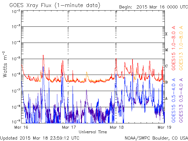 De operationele data in de bovenstaande grafiek werd aangepast om de schaalfactor te verwijderen die werd toegepast door het Space Weather Prediction Center (SWPC). Vanwege de SWPC-schaalfactor in de operationele data werden de zonnevlammen 42% kleiner gerapporteerd dan deze in de wetenschappelijke data. De schaalfactor werd ook verwijderd uit de lijst met zonnevlammen om de werkelijke fysieke eenheden weer te geven.