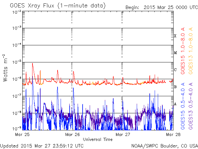 De operationele data in de bovenstaande grafiek werd aangepast om de schaalfactor te verwijderen die werd toegepast door het Space Weather Prediction Center (SWPC). Vanwege de SWPC-schaalfactor in de operationele data werden de zonnevlammen 42% kleiner gerapporteerd dan deze in de wetenschappelijke data. De schaalfactor werd ook verwijderd uit de lijst met zonnevlammen om de werkelijke fysieke eenheden weer te geven.