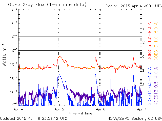 De operationele data in de bovenstaande grafiek werd aangepast om de schaalfactor te verwijderen die werd toegepast door het Space Weather Prediction Center (SWPC). Vanwege de SWPC-schaalfactor in de operationele data werden de zonnevlammen 42% kleiner gerapporteerd dan deze in de wetenschappelijke data. De schaalfactor werd ook verwijderd uit de lijst met zonnevlammen om de werkelijke fysieke eenheden weer te geven.