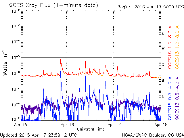 De operationele data in de bovenstaande grafiek werd aangepast om de schaalfactor te verwijderen die werd toegepast door het Space Weather Prediction Center (SWPC). Vanwege de SWPC-schaalfactor in de operationele data werden de zonnevlammen 42% kleiner gerapporteerd dan deze in de wetenschappelijke data. De schaalfactor werd ook verwijderd uit de lijst met zonnevlammen om de werkelijke fysieke eenheden weer te geven.