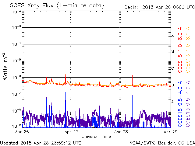 De operationele data in de bovenstaande grafiek werd aangepast om de schaalfactor te verwijderen die werd toegepast door het Space Weather Prediction Center (SWPC). Vanwege de SWPC-schaalfactor in de operationele data werden de zonnevlammen 42% kleiner gerapporteerd dan deze in de wetenschappelijke data. De schaalfactor werd ook verwijderd uit de lijst met zonnevlammen om de werkelijke fysieke eenheden weer te geven.