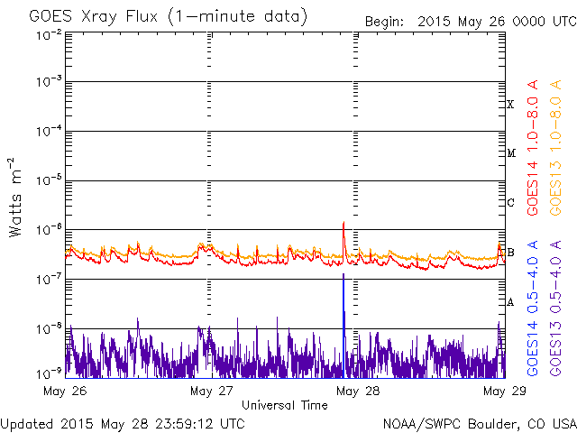 De operationele data in de bovenstaande grafiek werd aangepast om de schaalfactor te verwijderen die werd toegepast door het Space Weather Prediction Center (SWPC). Vanwege de SWPC-schaalfactor in de operationele data werden de zonnevlammen 42% kleiner gerapporteerd dan deze in de wetenschappelijke data. De schaalfactor werd ook verwijderd uit de lijst met zonnevlammen om de werkelijke fysieke eenheden weer te geven.