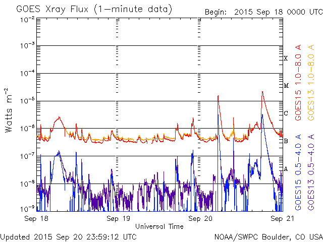 De operationele data in de bovenstaande grafiek werd aangepast om de schaalfactor te verwijderen die werd toegepast door het Space Weather Prediction Center (SWPC). Vanwege de SWPC-schaalfactor in de operationele data werden de zonnevlammen 42% kleiner gerapporteerd dan deze in de wetenschappelijke data. De schaalfactor werd ook verwijderd uit de lijst met zonnevlammen om de werkelijke fysieke eenheden weer te geven.