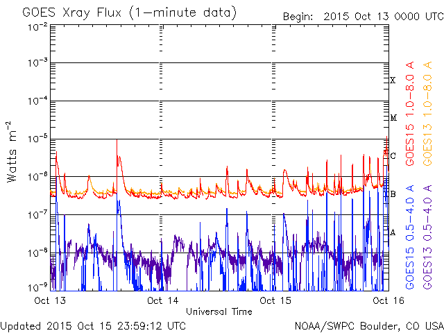 De operationele data in de bovenstaande grafiek werd aangepast om de schaalfactor te verwijderen die werd toegepast door het Space Weather Prediction Center (SWPC). Vanwege de SWPC-schaalfactor in de operationele data werden de zonnevlammen 42% kleiner gerapporteerd dan deze in de wetenschappelijke data. De schaalfactor werd ook verwijderd uit de lijst met zonnevlammen om de werkelijke fysieke eenheden weer te geven.