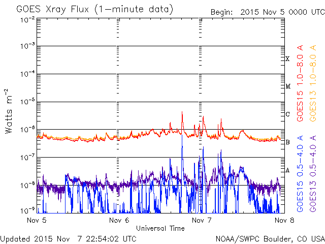 De operationele data in de bovenstaande grafiek werd aangepast om de schaalfactor te verwijderen die werd toegepast door het Space Weather Prediction Center (SWPC). Vanwege de SWPC-schaalfactor in de operationele data werden de zonnevlammen 42% kleiner gerapporteerd dan deze in de wetenschappelijke data. De schaalfactor werd ook verwijderd uit de lijst met zonnevlammen om de werkelijke fysieke eenheden weer te geven.