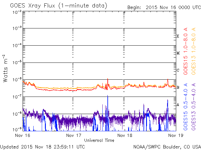 De operationele data in de bovenstaande grafiek werd aangepast om de schaalfactor te verwijderen die werd toegepast door het Space Weather Prediction Center (SWPC). Vanwege de SWPC-schaalfactor in de operationele data werden de zonnevlammen 42% kleiner gerapporteerd dan deze in de wetenschappelijke data. De schaalfactor werd ook verwijderd uit de lijst met zonnevlammen om de werkelijke fysieke eenheden weer te geven.