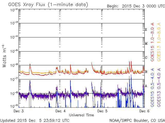 De operationele data in de bovenstaande grafiek werd aangepast om de schaalfactor te verwijderen die werd toegepast door het Space Weather Prediction Center (SWPC). Vanwege de SWPC-schaalfactor in de operationele data werden de zonnevlammen 42% kleiner gerapporteerd dan deze in de wetenschappelijke data. De schaalfactor werd ook verwijderd uit de lijst met zonnevlammen om de werkelijke fysieke eenheden weer te geven.