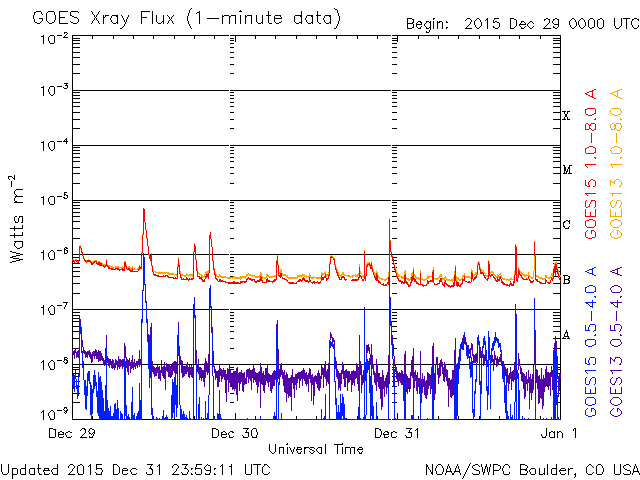 De operationele data in de bovenstaande grafiek werd aangepast om de schaalfactor te verwijderen die werd toegepast door het Space Weather Prediction Center (SWPC). Vanwege de SWPC-schaalfactor in de operationele data werden de zonnevlammen 42% kleiner gerapporteerd dan deze in de wetenschappelijke data. De schaalfactor werd ook verwijderd uit de lijst met zonnevlammen om de werkelijke fysieke eenheden weer te geven.
