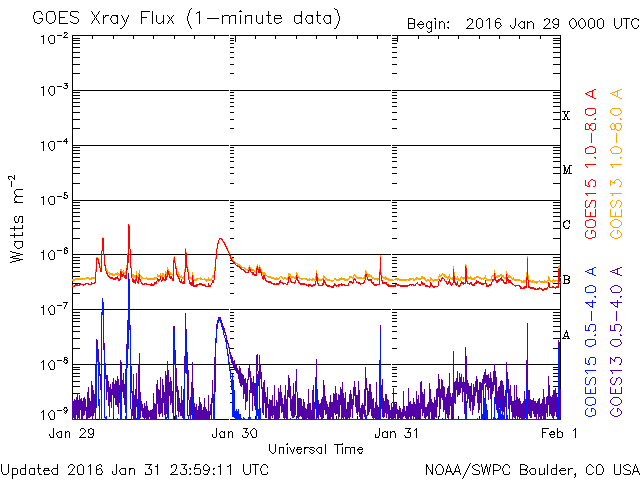De operationele data in de bovenstaande grafiek werd aangepast om de schaalfactor te verwijderen die werd toegepast door het Space Weather Prediction Center (SWPC). Vanwege de SWPC-schaalfactor in de operationele data werden de zonnevlammen 42% kleiner gerapporteerd dan deze in de wetenschappelijke data. De schaalfactor werd ook verwijderd uit de lijst met zonnevlammen om de werkelijke fysieke eenheden weer te geven.
