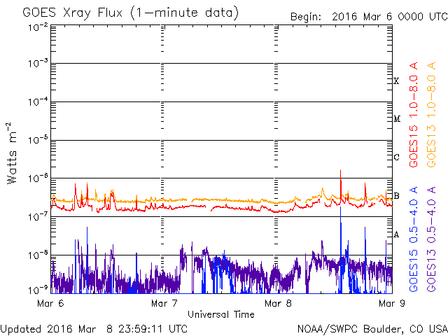 De operationele data in de bovenstaande grafiek werd aangepast om de schaalfactor te verwijderen die werd toegepast door het Space Weather Prediction Center (SWPC). Vanwege de SWPC-schaalfactor in de operationele data werden de zonnevlammen 42% kleiner gerapporteerd dan deze in de wetenschappelijke data. De schaalfactor werd ook verwijderd uit de lijst met zonnevlammen om de werkelijke fysieke eenheden weer te geven.