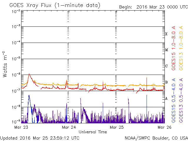 De operationele data in de bovenstaande grafiek werd aangepast om de schaalfactor te verwijderen die werd toegepast door het Space Weather Prediction Center (SWPC). Vanwege de SWPC-schaalfactor in de operationele data werden de zonnevlammen 42% kleiner gerapporteerd dan deze in de wetenschappelijke data. De schaalfactor werd ook verwijderd uit de lijst met zonnevlammen om de werkelijke fysieke eenheden weer te geven.
