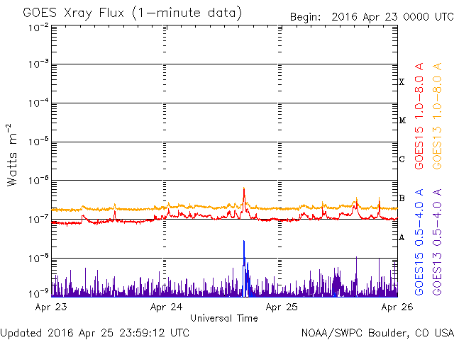 De operationele data in de bovenstaande grafiek werd aangepast om de schaalfactor te verwijderen die werd toegepast door het Space Weather Prediction Center (SWPC). Vanwege de SWPC-schaalfactor in de operationele data werden de zonnevlammen 42% kleiner gerapporteerd dan deze in de wetenschappelijke data. De schaalfactor werd ook verwijderd uit de lijst met zonnevlammen om de werkelijke fysieke eenheden weer te geven.