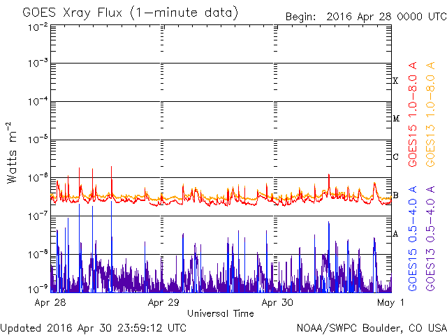 De operationele data in de bovenstaande grafiek werd aangepast om de schaalfactor te verwijderen die werd toegepast door het Space Weather Prediction Center (SWPC). Vanwege de SWPC-schaalfactor in de operationele data werden de zonnevlammen 42% kleiner gerapporteerd dan deze in de wetenschappelijke data. De schaalfactor werd ook verwijderd uit de lijst met zonnevlammen om de werkelijke fysieke eenheden weer te geven.