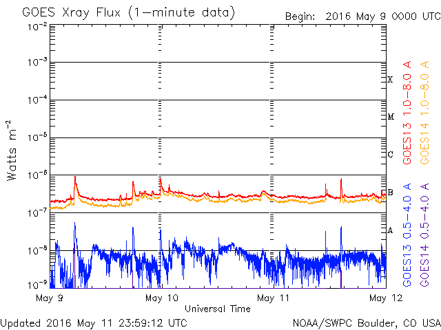 De operationele data in de bovenstaande grafiek werd aangepast om de schaalfactor te verwijderen die werd toegepast door het Space Weather Prediction Center (SWPC). Vanwege de SWPC-schaalfactor in de operationele data werden de zonnevlammen 42% kleiner gerapporteerd dan deze in de wetenschappelijke data. De schaalfactor werd ook verwijderd uit de lijst met zonnevlammen om de werkelijke fysieke eenheden weer te geven.