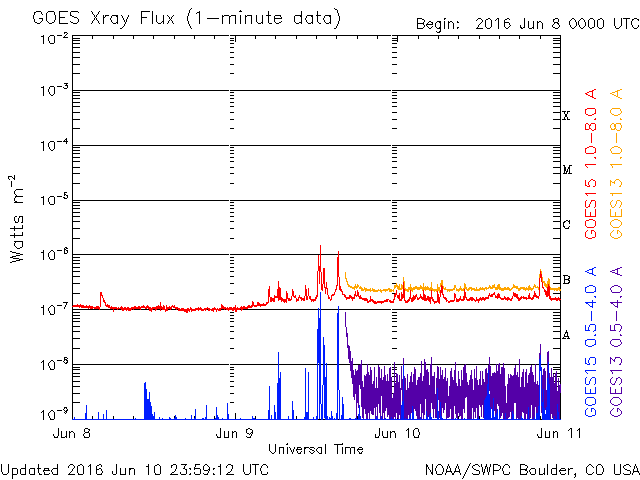 De operationele data in de bovenstaande grafiek werd aangepast om de schaalfactor te verwijderen die werd toegepast door het Space Weather Prediction Center (SWPC). Vanwege de SWPC-schaalfactor in de operationele data werden de zonnevlammen 42% kleiner gerapporteerd dan deze in de wetenschappelijke data. De schaalfactor werd ook verwijderd uit de lijst met zonnevlammen om de werkelijke fysieke eenheden weer te geven.
