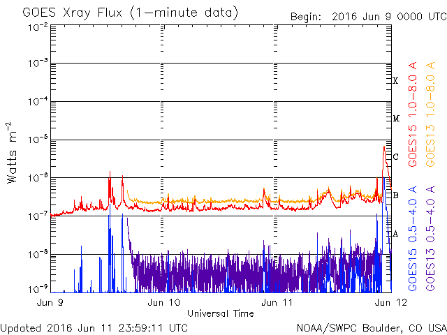 De operationele data in de bovenstaande grafiek werd aangepast om de schaalfactor te verwijderen die werd toegepast door het Space Weather Prediction Center (SWPC). Vanwege de SWPC-schaalfactor in de operationele data werden de zonnevlammen 42% kleiner gerapporteerd dan deze in de wetenschappelijke data. De schaalfactor werd ook verwijderd uit de lijst met zonnevlammen om de werkelijke fysieke eenheden weer te geven.