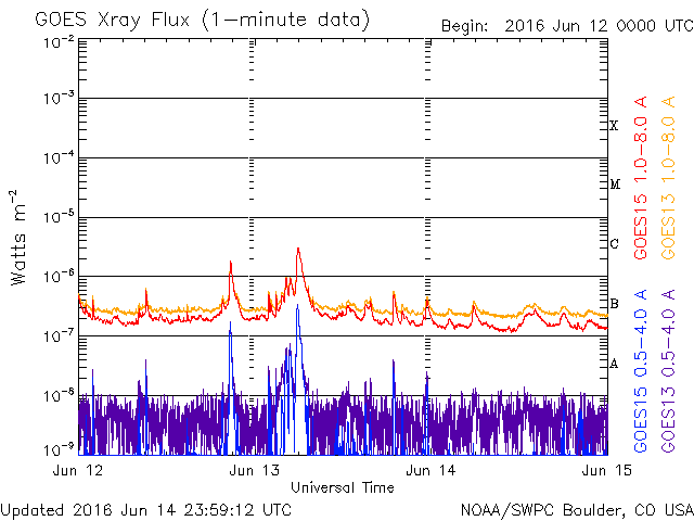 De operationele data in de bovenstaande grafiek werd aangepast om de schaalfactor te verwijderen die werd toegepast door het Space Weather Prediction Center (SWPC). Vanwege de SWPC-schaalfactor in de operationele data werden de zonnevlammen 42% kleiner gerapporteerd dan deze in de wetenschappelijke data. De schaalfactor werd ook verwijderd uit de lijst met zonnevlammen om de werkelijke fysieke eenheden weer te geven.