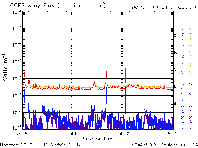 De operationele data in de bovenstaande grafiek werd aangepast om de schaalfactor te verwijderen die werd toegepast door het Space Weather Prediction Center (SWPC). Vanwege de SWPC-schaalfactor in de operationele data werden de zonnevlammen 42% kleiner gerapporteerd dan deze in de wetenschappelijke data. De schaalfactor werd ook verwijderd uit de lijst met zonnevlammen om de werkelijke fysieke eenheden weer te geven.