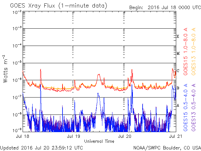 De operationele data in de bovenstaande grafiek werd aangepast om de schaalfactor te verwijderen die werd toegepast door het Space Weather Prediction Center (SWPC). Vanwege de SWPC-schaalfactor in de operationele data werden de zonnevlammen 42% kleiner gerapporteerd dan deze in de wetenschappelijke data. De schaalfactor werd ook verwijderd uit de lijst met zonnevlammen om de werkelijke fysieke eenheden weer te geven.