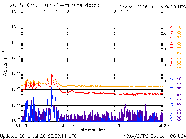De operationele data in de bovenstaande grafiek werd aangepast om de schaalfactor te verwijderen die werd toegepast door het Space Weather Prediction Center (SWPC). Vanwege de SWPC-schaalfactor in de operationele data werden de zonnevlammen 42% kleiner gerapporteerd dan deze in de wetenschappelijke data. De schaalfactor werd ook verwijderd uit de lijst met zonnevlammen om de werkelijke fysieke eenheden weer te geven.