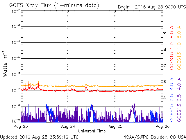 De operationele data in de bovenstaande grafiek werd aangepast om de schaalfactor te verwijderen die werd toegepast door het Space Weather Prediction Center (SWPC). Vanwege de SWPC-schaalfactor in de operationele data werden de zonnevlammen 42% kleiner gerapporteerd dan deze in de wetenschappelijke data. De schaalfactor werd ook verwijderd uit de lijst met zonnevlammen om de werkelijke fysieke eenheden weer te geven.