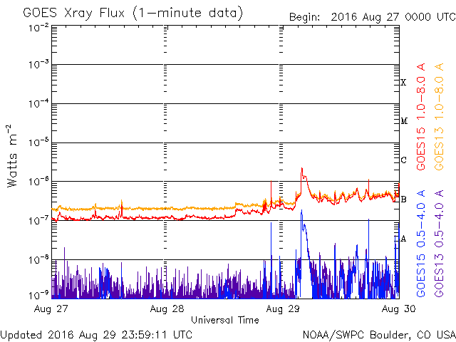 De operationele data in de bovenstaande grafiek werd aangepast om de schaalfactor te verwijderen die werd toegepast door het Space Weather Prediction Center (SWPC). Vanwege de SWPC-schaalfactor in de operationele data werden de zonnevlammen 42% kleiner gerapporteerd dan deze in de wetenschappelijke data. De schaalfactor werd ook verwijderd uit de lijst met zonnevlammen om de werkelijke fysieke eenheden weer te geven.