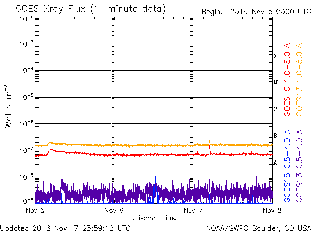 De operationele data in de bovenstaande grafiek werd aangepast om de schaalfactor te verwijderen die werd toegepast door het Space Weather Prediction Center (SWPC). Vanwege de SWPC-schaalfactor in de operationele data werden de zonnevlammen 42% kleiner gerapporteerd dan deze in de wetenschappelijke data. De schaalfactor werd ook verwijderd uit de lijst met zonnevlammen om de werkelijke fysieke eenheden weer te geven.