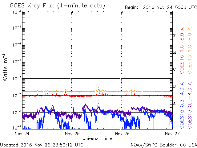 De operationele data in de bovenstaande grafiek werd aangepast om de schaalfactor te verwijderen die werd toegepast door het Space Weather Prediction Center (SWPC). Vanwege de SWPC-schaalfactor in de operationele data werden de zonnevlammen 42% kleiner gerapporteerd dan deze in de wetenschappelijke data. De schaalfactor werd ook verwijderd uit de lijst met zonnevlammen om de werkelijke fysieke eenheden weer te geven.