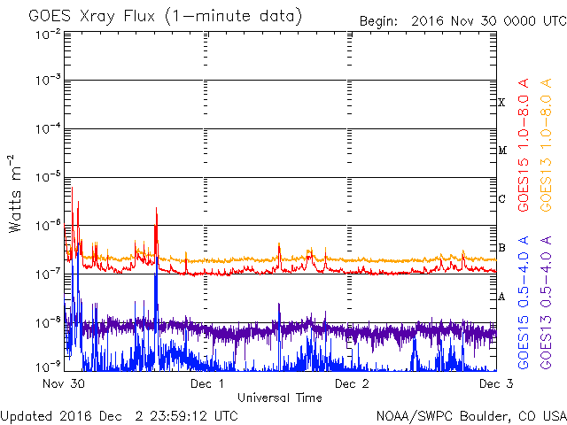 De operationele data in de bovenstaande grafiek werd aangepast om de schaalfactor te verwijderen die werd toegepast door het Space Weather Prediction Center (SWPC). Vanwege de SWPC-schaalfactor in de operationele data werden de zonnevlammen 42% kleiner gerapporteerd dan deze in de wetenschappelijke data. De schaalfactor werd ook verwijderd uit de lijst met zonnevlammen om de werkelijke fysieke eenheden weer te geven.
