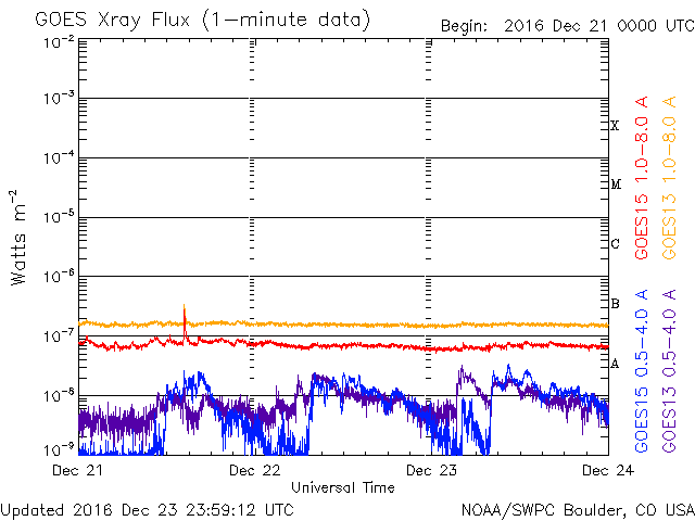 De operationele data in de bovenstaande grafiek werd aangepast om de schaalfactor te verwijderen die werd toegepast door het Space Weather Prediction Center (SWPC). Vanwege de SWPC-schaalfactor in de operationele data werden de zonnevlammen 42% kleiner gerapporteerd dan deze in de wetenschappelijke data. De schaalfactor werd ook verwijderd uit de lijst met zonnevlammen om de werkelijke fysieke eenheden weer te geven.