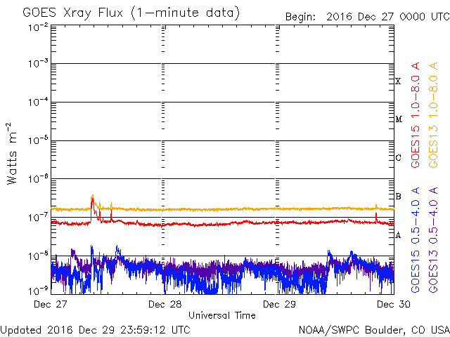 De operationele data in de bovenstaande grafiek werd aangepast om de schaalfactor te verwijderen die werd toegepast door het Space Weather Prediction Center (SWPC). Vanwege de SWPC-schaalfactor in de operationele data werden de zonnevlammen 42% kleiner gerapporteerd dan deze in de wetenschappelijke data. De schaalfactor werd ook verwijderd uit de lijst met zonnevlammen om de werkelijke fysieke eenheden weer te geven.