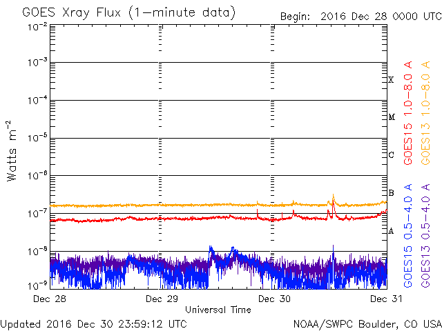 De operationele data in de bovenstaande grafiek werd aangepast om de schaalfactor te verwijderen die werd toegepast door het Space Weather Prediction Center (SWPC). Vanwege de SWPC-schaalfactor in de operationele data werden de zonnevlammen 42% kleiner gerapporteerd dan deze in de wetenschappelijke data. De schaalfactor werd ook verwijderd uit de lijst met zonnevlammen om de werkelijke fysieke eenheden weer te geven.