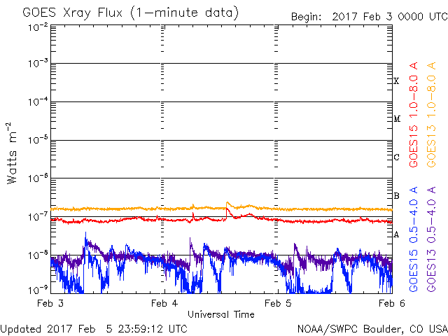 De operationele data in de bovenstaande grafiek werd aangepast om de schaalfactor te verwijderen die werd toegepast door het Space Weather Prediction Center (SWPC). Vanwege de SWPC-schaalfactor in de operationele data werden de zonnevlammen 42% kleiner gerapporteerd dan deze in de wetenschappelijke data. De schaalfactor werd ook verwijderd uit de lijst met zonnevlammen om de werkelijke fysieke eenheden weer te geven.