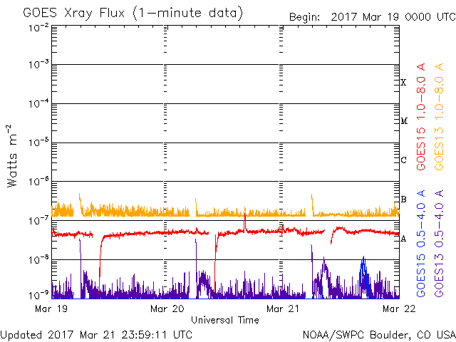 De operationele data in de bovenstaande grafiek werd aangepast om de schaalfactor te verwijderen die werd toegepast door het Space Weather Prediction Center (SWPC). Vanwege de SWPC-schaalfactor in de operationele data werden de zonnevlammen 42% kleiner gerapporteerd dan deze in de wetenschappelijke data. De schaalfactor werd ook verwijderd uit de lijst met zonnevlammen om de werkelijke fysieke eenheden weer te geven.