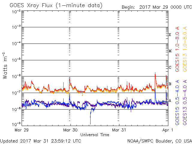 De operationele data in de bovenstaande grafiek werd aangepast om de schaalfactor te verwijderen die werd toegepast door het Space Weather Prediction Center (SWPC). Vanwege de SWPC-schaalfactor in de operationele data werden de zonnevlammen 42% kleiner gerapporteerd dan deze in de wetenschappelijke data. De schaalfactor werd ook verwijderd uit de lijst met zonnevlammen om de werkelijke fysieke eenheden weer te geven.