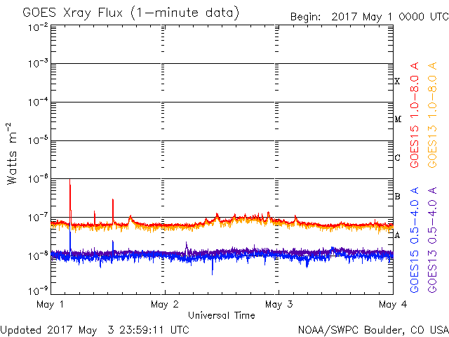 De operationele data in de bovenstaande grafiek werd aangepast om de schaalfactor te verwijderen die werd toegepast door het Space Weather Prediction Center (SWPC). Vanwege de SWPC-schaalfactor in de operationele data werden de zonnevlammen 42% kleiner gerapporteerd dan deze in de wetenschappelijke data. De schaalfactor werd ook verwijderd uit de lijst met zonnevlammen om de werkelijke fysieke eenheden weer te geven.