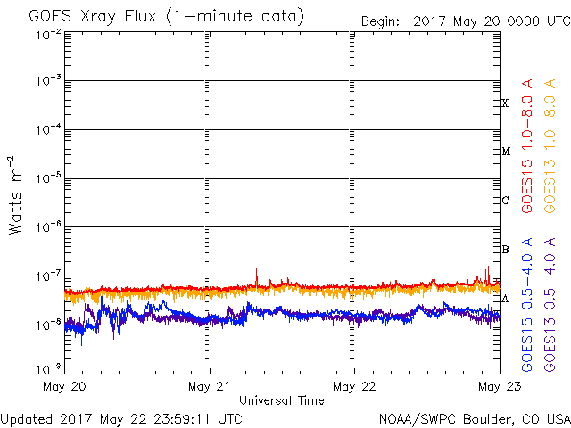 De operationele data in de bovenstaande grafiek werd aangepast om de schaalfactor te verwijderen die werd toegepast door het Space Weather Prediction Center (SWPC). Vanwege de SWPC-schaalfactor in de operationele data werden de zonnevlammen 42% kleiner gerapporteerd dan deze in de wetenschappelijke data. De schaalfactor werd ook verwijderd uit de lijst met zonnevlammen om de werkelijke fysieke eenheden weer te geven.