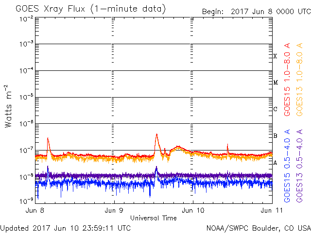De operationele data in de bovenstaande grafiek werd aangepast om de schaalfactor te verwijderen die werd toegepast door het Space Weather Prediction Center (SWPC). Vanwege de SWPC-schaalfactor in de operationele data werden de zonnevlammen 42% kleiner gerapporteerd dan deze in de wetenschappelijke data. De schaalfactor werd ook verwijderd uit de lijst met zonnevlammen om de werkelijke fysieke eenheden weer te geven.