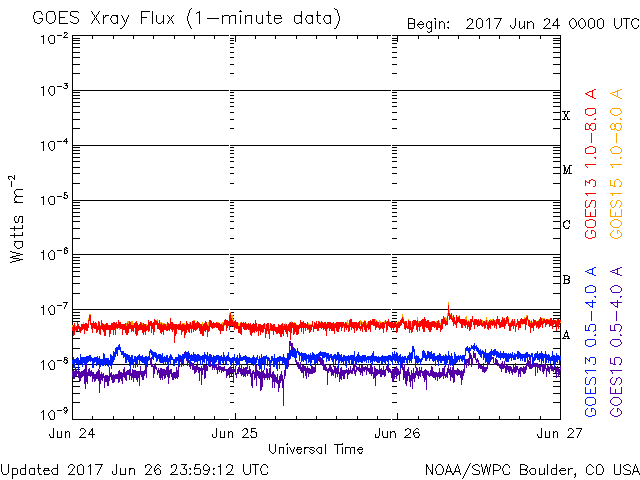 De operationele data in de bovenstaande grafiek werd aangepast om de schaalfactor te verwijderen die werd toegepast door het Space Weather Prediction Center (SWPC). Vanwege de SWPC-schaalfactor in de operationele data werden de zonnevlammen 42% kleiner gerapporteerd dan deze in de wetenschappelijke data. De schaalfactor werd ook verwijderd uit de lijst met zonnevlammen om de werkelijke fysieke eenheden weer te geven.