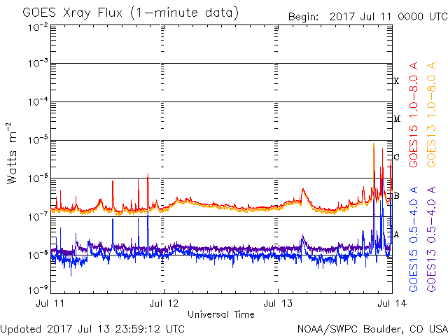 De operationele data in de bovenstaande grafiek werd aangepast om de schaalfactor te verwijderen die werd toegepast door het Space Weather Prediction Center (SWPC). Vanwege de SWPC-schaalfactor in de operationele data werden de zonnevlammen 42% kleiner gerapporteerd dan deze in de wetenschappelijke data. De schaalfactor werd ook verwijderd uit de lijst met zonnevlammen om de werkelijke fysieke eenheden weer te geven.
