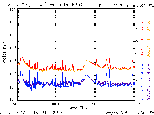 De operationele data in de bovenstaande grafiek werd aangepast om de schaalfactor te verwijderen die werd toegepast door het Space Weather Prediction Center (SWPC). Vanwege de SWPC-schaalfactor in de operationele data werden de zonnevlammen 42% kleiner gerapporteerd dan deze in de wetenschappelijke data. De schaalfactor werd ook verwijderd uit de lijst met zonnevlammen om de werkelijke fysieke eenheden weer te geven.