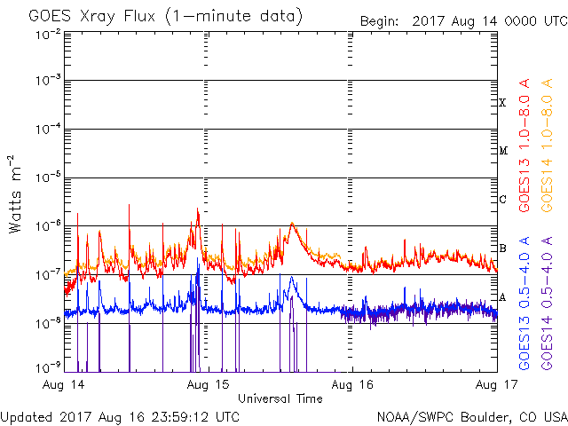 De operationele data in de bovenstaande grafiek werd aangepast om de schaalfactor te verwijderen die werd toegepast door het Space Weather Prediction Center (SWPC). Vanwege de SWPC-schaalfactor in de operationele data werden de zonnevlammen 42% kleiner gerapporteerd dan deze in de wetenschappelijke data. De schaalfactor werd ook verwijderd uit de lijst met zonnevlammen om de werkelijke fysieke eenheden weer te geven.