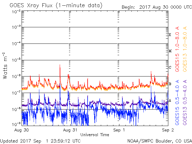 De operationele data in de bovenstaande grafiek werd aangepast om de schaalfactor te verwijderen die werd toegepast door het Space Weather Prediction Center (SWPC). Vanwege de SWPC-schaalfactor in de operationele data werden de zonnevlammen 42% kleiner gerapporteerd dan deze in de wetenschappelijke data. De schaalfactor werd ook verwijderd uit de lijst met zonnevlammen om de werkelijke fysieke eenheden weer te geven.