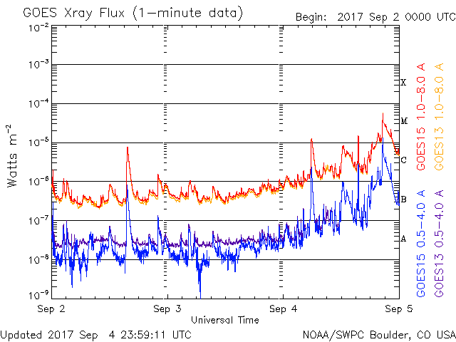 De operationele data in de bovenstaande grafiek werd aangepast om de schaalfactor te verwijderen die werd toegepast door het Space Weather Prediction Center (SWPC). Vanwege de SWPC-schaalfactor in de operationele data werden de zonnevlammen 42% kleiner gerapporteerd dan deze in de wetenschappelijke data. De schaalfactor werd ook verwijderd uit de lijst met zonnevlammen om de werkelijke fysieke eenheden weer te geven.
