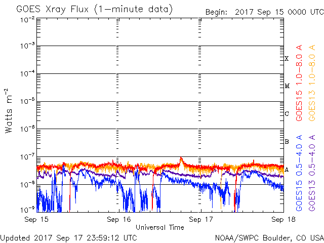 De operationele data in de bovenstaande grafiek werd aangepast om de schaalfactor te verwijderen die werd toegepast door het Space Weather Prediction Center (SWPC). Vanwege de SWPC-schaalfactor in de operationele data werden de zonnevlammen 42% kleiner gerapporteerd dan deze in de wetenschappelijke data. De schaalfactor werd ook verwijderd uit de lijst met zonnevlammen om de werkelijke fysieke eenheden weer te geven.