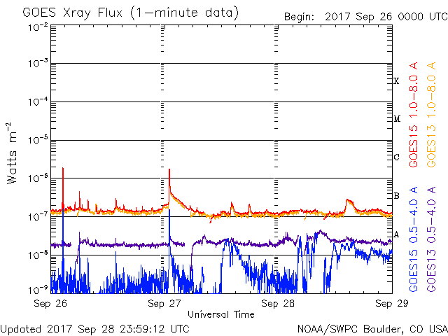 De operationele data in de bovenstaande grafiek werd aangepast om de schaalfactor te verwijderen die werd toegepast door het Space Weather Prediction Center (SWPC). Vanwege de SWPC-schaalfactor in de operationele data werden de zonnevlammen 42% kleiner gerapporteerd dan deze in de wetenschappelijke data. De schaalfactor werd ook verwijderd uit de lijst met zonnevlammen om de werkelijke fysieke eenheden weer te geven.