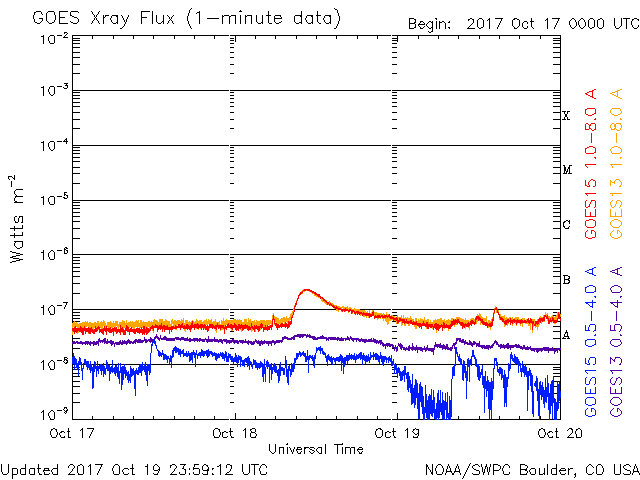 De operationele data in de bovenstaande grafiek werd aangepast om de schaalfactor te verwijderen die werd toegepast door het Space Weather Prediction Center (SWPC). Vanwege de SWPC-schaalfactor in de operationele data werden de zonnevlammen 42% kleiner gerapporteerd dan deze in de wetenschappelijke data. De schaalfactor werd ook verwijderd uit de lijst met zonnevlammen om de werkelijke fysieke eenheden weer te geven.
